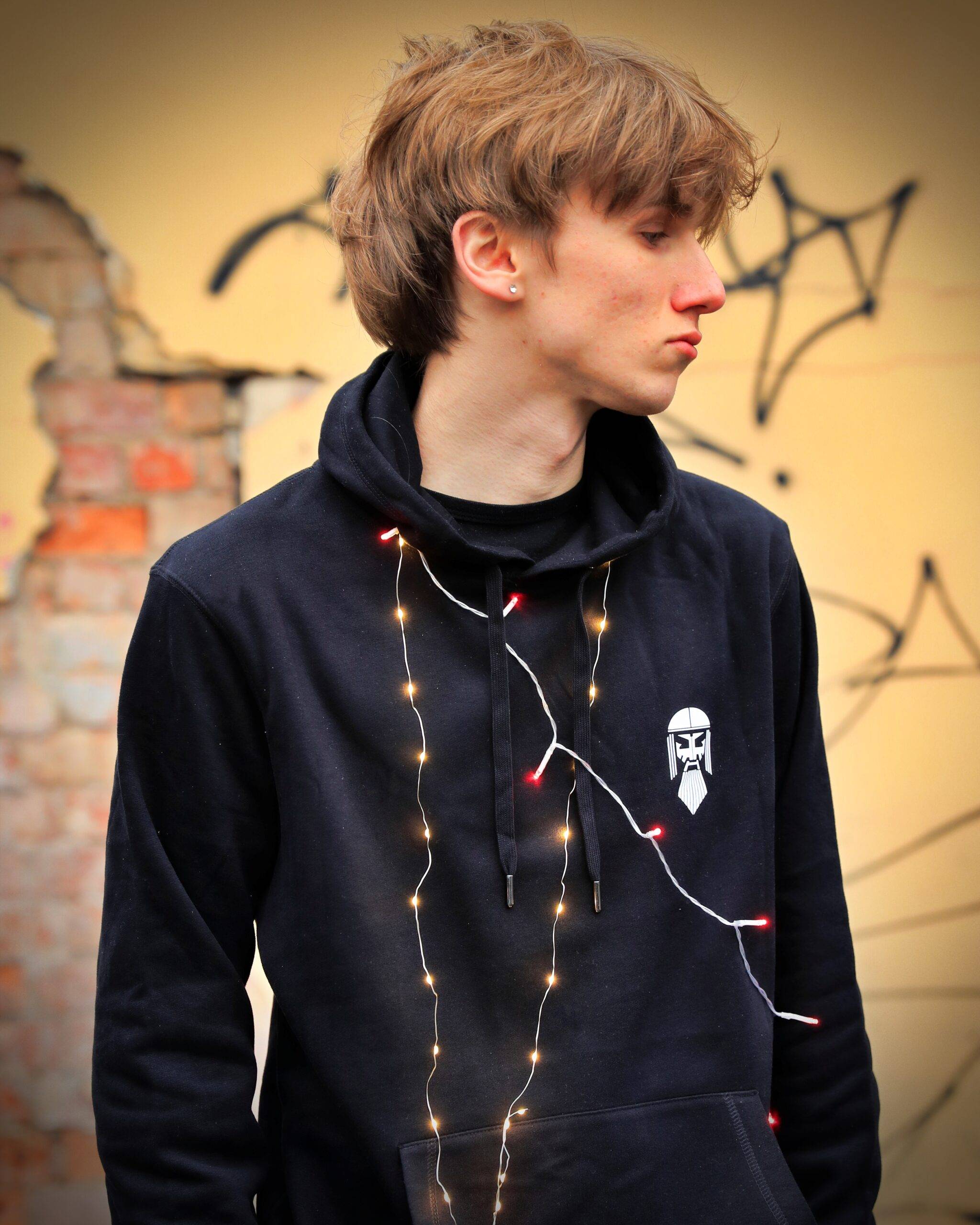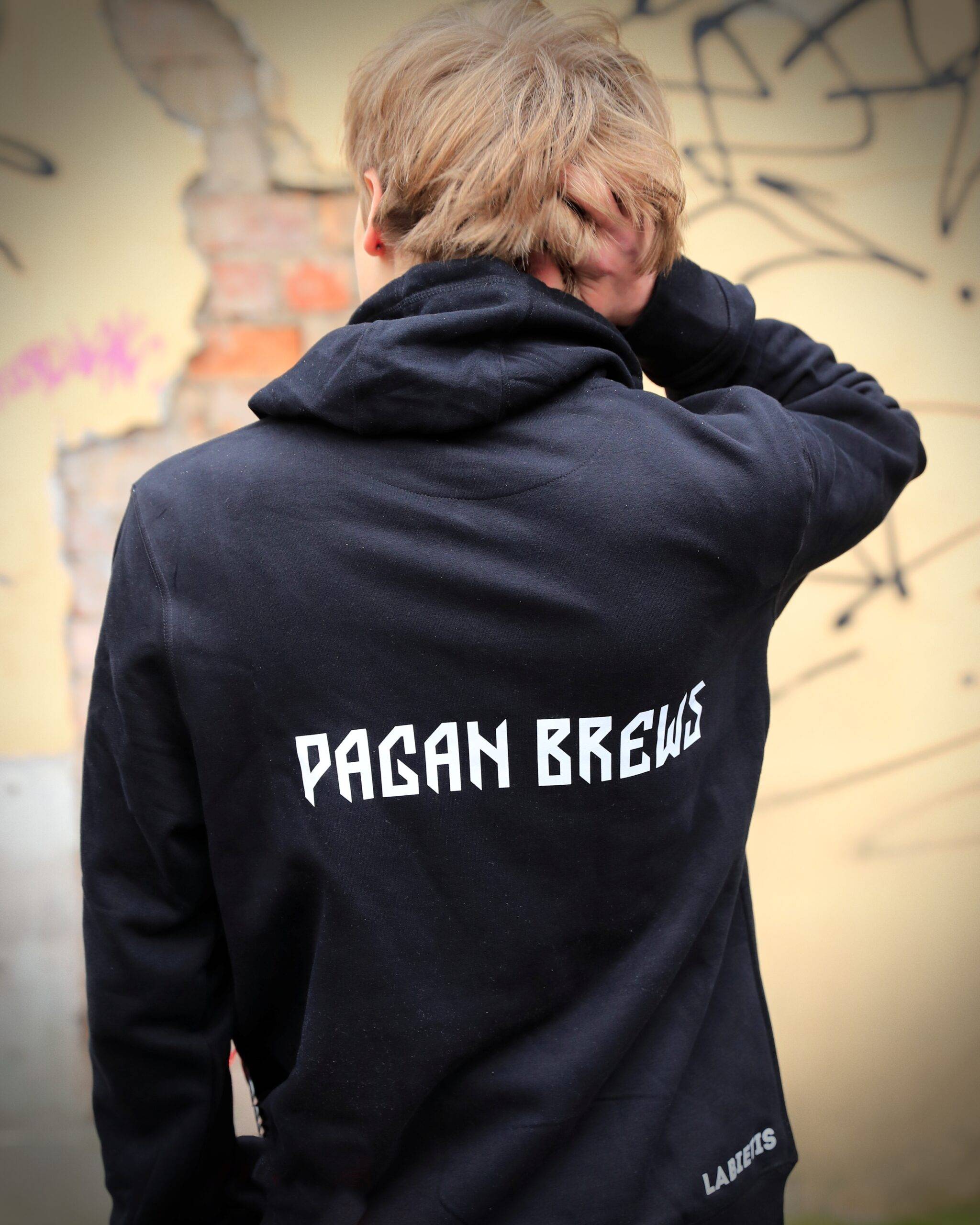 Pagan Brews džemperis ar dubultu kapuci. Metāla apdare striķiem un actiņām. Kakla lente. Sānu vīles. Pagarināta piegrieztne, kas der arī kā Unisex. Pagan Brews apdruka uz muguras, priekšpusē uz kreisāts krūts Labietis logo simbols.
